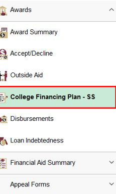 4.Select the College Financing Plan - SS tab on the left side of the screen.